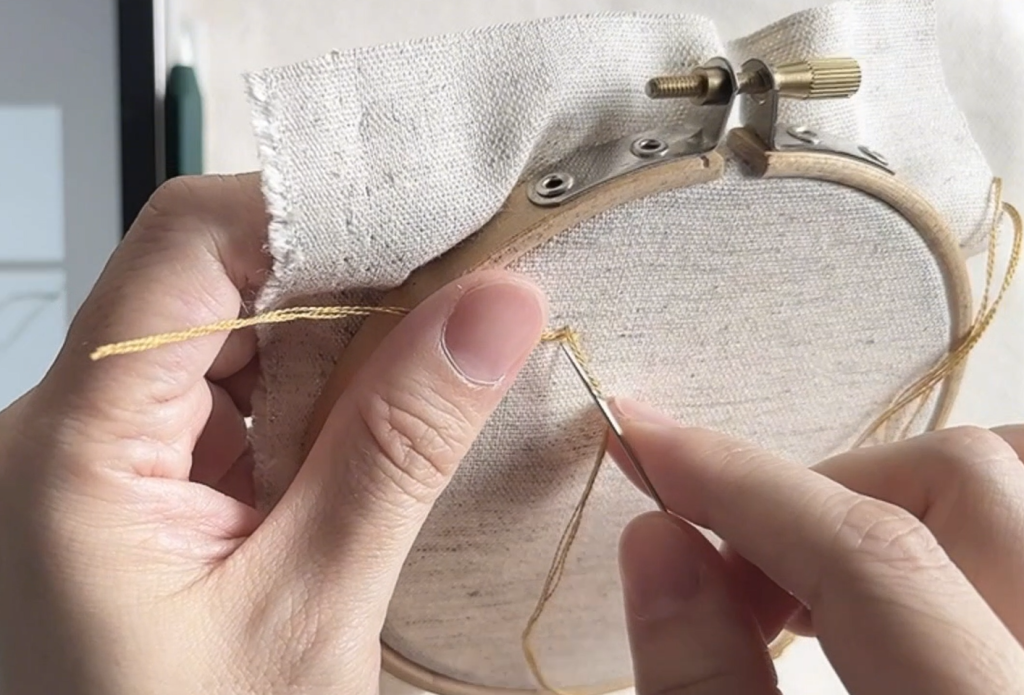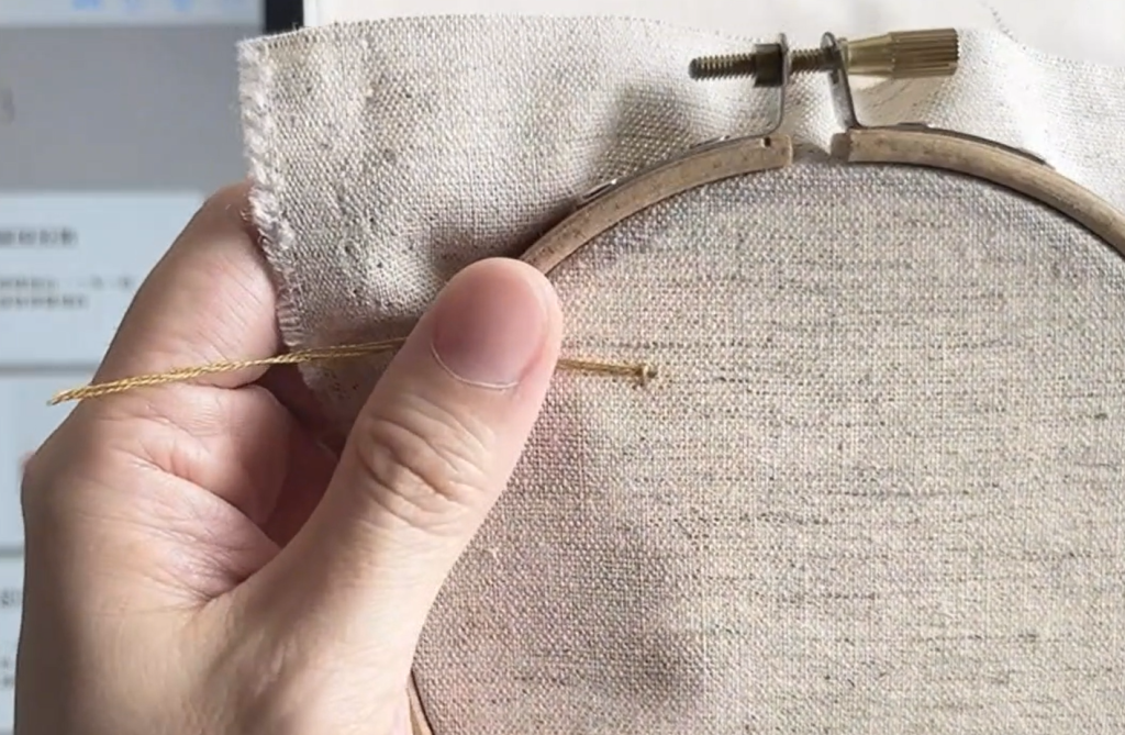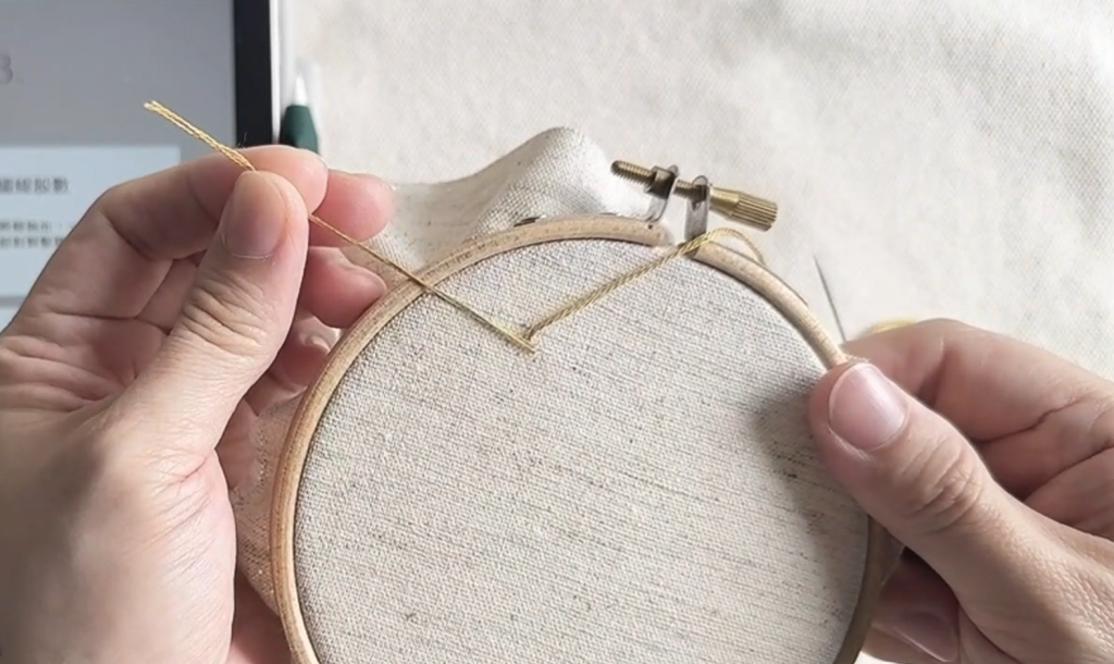 這樣就可以開始刺繡囉,這種起針方式可以讓背面更乾淨、不凸起,也不會因為結鬆掉而脫線哦!