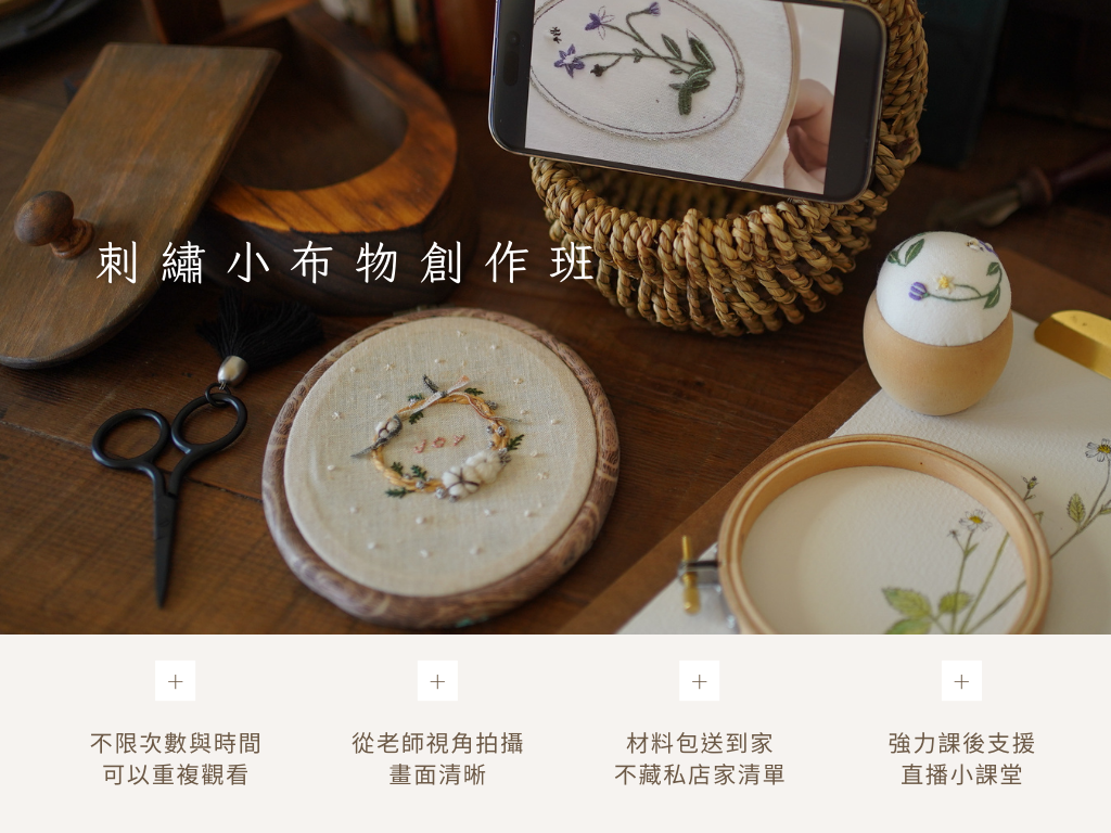 不論你想自由創作,或先從設計好的作品開始,這堂課都能幫助你完成理想中的刺繡布物!一起享受縫紉與刺繡的療癒時光吧!